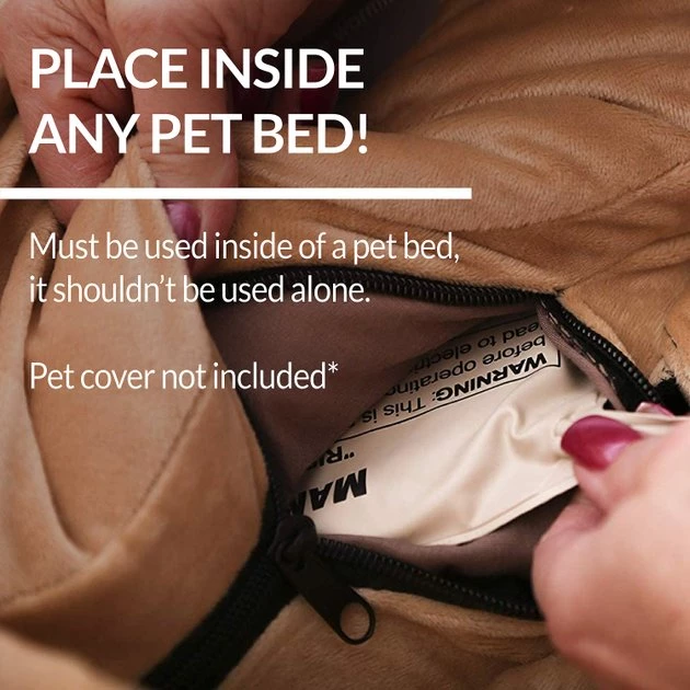 - Slides into any zippered dog or cat bed and is recommended for beds with at least ½ inch of padding between the warmer and bed surface.