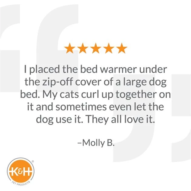 Help keep your canine companion or feline friend nice and cozy and toasty with the K&H Pet Products Pet Bed Warmer. This warmer is now available in 4 sizes, each utilizing dual thermostats for added comfort. It can be placed inside virtually any pet bed and is easy to use. Just plug it in. It is designed to warm only when inside a pets bed. The pet bed warmer is intended for indoor use only.