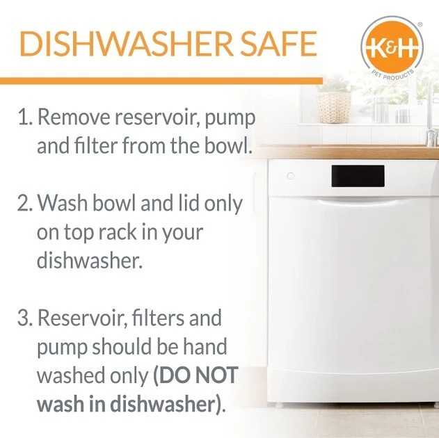 Give thirsty pets a long drink of fresh water anytime with the K&H Pet Products CleanFlow Filtered Water Bowl with Reservoir. This water bowl features silent, leak-proof operation, so you won’t have to worry about it soaking your floors or carpet. It cycles a full bowl of water up to 130 times per hour, running it through a charcoal filter that helps remove impurities. The clean, flowing water invites more water consumption by pets—a must for proper hydration and good health. The bowl portion is dishwasher safe for easy cleaning and the pump is UL Safety Listed for your pet’s safety and your peace of mind. Your best friend will love this refreshing water bowl!