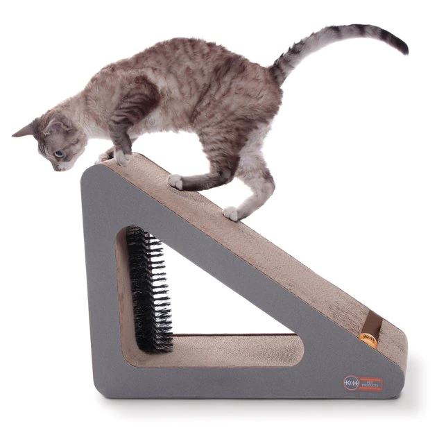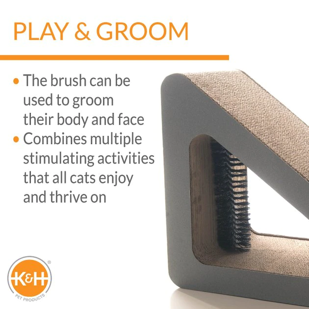 Let your furry friend satisfy all of her natural instincts with the K&H Pet Products Creative Kitty Scratch, Ramp & Groom Cat Toy. Made of durable cardboard, it features areas for your kitty to scratch, stretch and play in one versatile toy. You paw-tner can stretch out on the ramp while really sinking her claws into the scratching surfaces or bat the two orange balls around for fun. This toy also has a grooming brush underneath the ramp and includes catnip to entice your companion to play even more. Whether your sidekick likes to play together or solo, K&H Pet Products Creative Kitty Scratch, Ramp & Groom Cat Toy will keep her busy for hours to come.