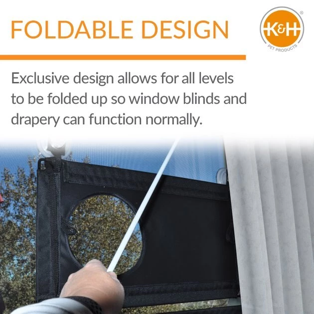 Good views and a comfortable hammock can be your cat’s with the K&H Pet Products EZ Mount Window Kitty Sill Quad Stack! This four-floor hammock has everything your feline friend could need. This kitty sill is built with industrial-strength suction cups to securely hold up your kitty as she watches people, stalks birds or just admires nature. When not in use, you can clean the covers in the washing machine and fold the hammocks up against the window to close the blinds. Give your purring pal a place to call her own with this fun and engaging window mount!