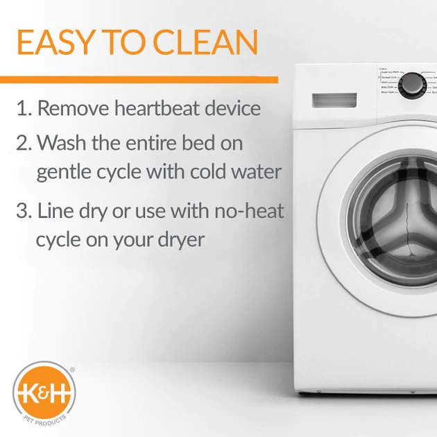 - The heartbeat device can be removed from the top pocket so you can put the pad in the washing machine, but your puppy is not meant to reach it.