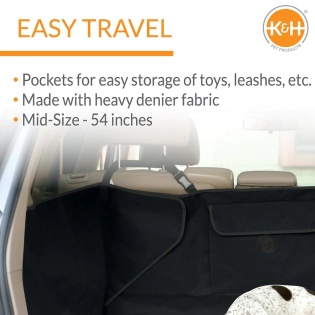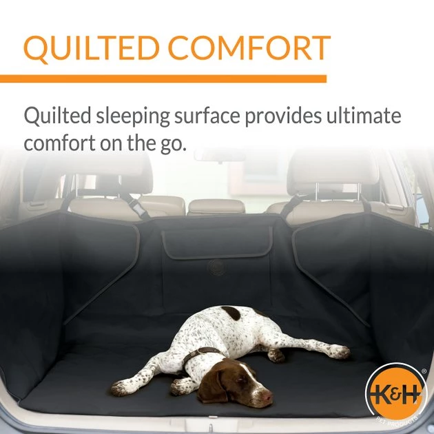 Hit the open road with protection thanks to the K&H Pet Products Quilted Cargo Cover. Designed to fit most any sized SUV, the purpose is to protect your upholstery and interior from muddy paws and long nails. The universal fit features adjustable fuzzy fastener flaps for easy installation and extra coverage along the sides, and it’s made from a durable 600 denier nylon with a vinyl back to create a water-resistant barrier. And for your dog’s riding enjoyment, the quilted top is ultra-comfortable and cozy, with a built-in pocket to hold leashes, toys, and treats.