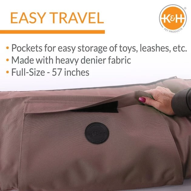 Protect the interior of your vehicle from dirt and scratches with the K&H Pet Products Quilted Cargo Pet Cover. Made with 600 denier nylon, this cover features a quilted top to provide your paw-tner with a comfortable place to rest. It has rubber backing for water-resistant protection and to keep it from sliding around. This cover is also easy to install with two straps that go over the headrest and adjustable fuzzy fastener flaps. K&H Pet Products Quilted Cargo Pet Cover includes a convenient pocket to store toys, leashes, treats or anything else you may need to take your companion for a ride.