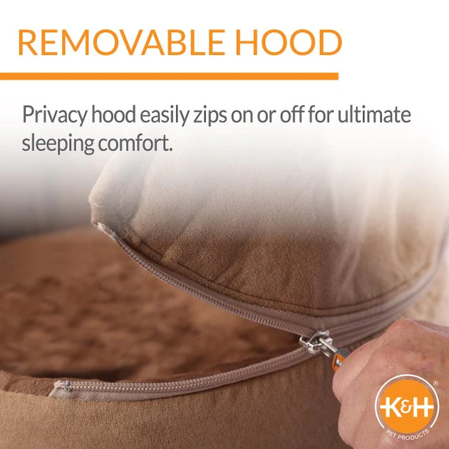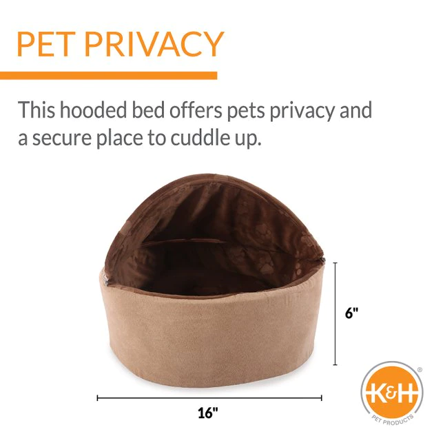 Give your cat a cozy place to rest with the K&H Pet Products Self-Warming Hooded Cat Bed. Checking off every box in the snooze department, this bed features a removable hood that gives him all the privacy and security he craves. And for the ever-important warmth factor, the polyfil cushion has a layer of metalized insulation that actually returns the warmth generated from his own body heat—keeping him cozier than ever. Naturally, there is a plush cushion in the center that cradles his body, and the soft side walls hug him in comfort. All this adds up the most kitty-approved bed around!
