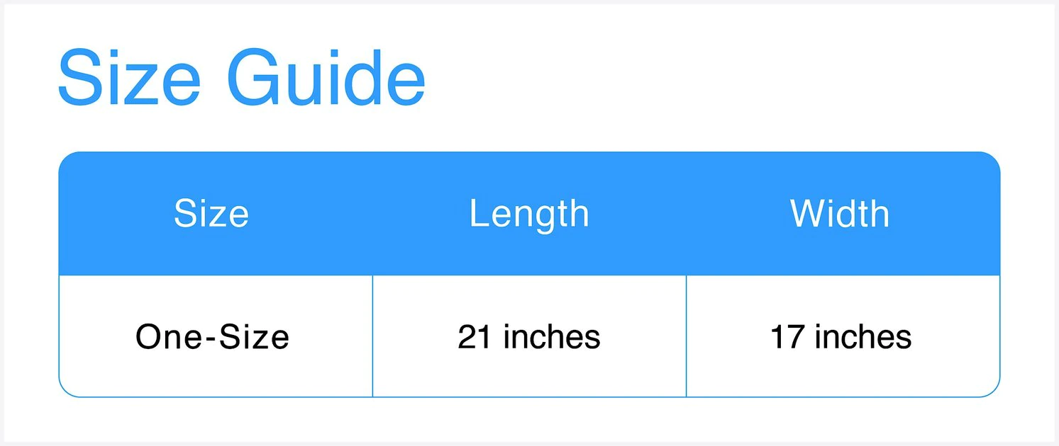 | One-Size | 21 inches | 17 inches | 1 inch |