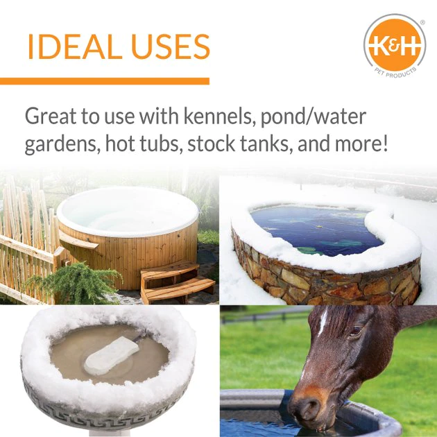 K&H Pet Products Thermo-Hose Heated Rubber Water Hose lets water flow even if it is freezing outside. It takes just 20 minutes to warm up and requires no draining between use. This double-wall rubber hose features solid brass couplings. K&H Pet Products Thermo-Hose Heated Rubber Water Hose is also thermostatically controlled and turns itself off in warmer weather.