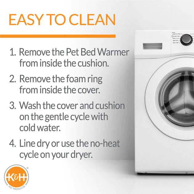 The K&H Thermo-Kitty Bed has a dual thermostat 4 watt heating unit buried deep within its thick, super soft, orthopedic foam base. It warms the surface 10‐15 degrees above ambient air temperature to your cat’s normal body temperature when in use. The washable cover is attractive in any room in the house. Indoor use only.