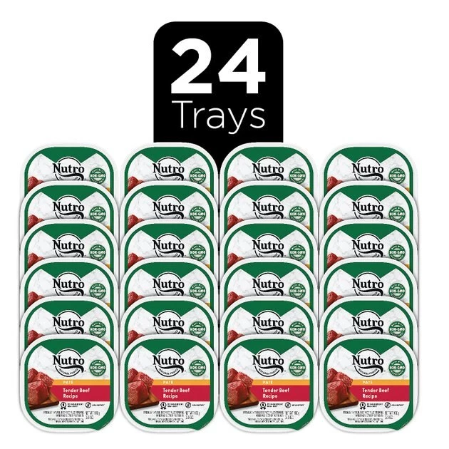 - Comes with 24, 3.5 oz. trays of Nutro Grain-Free Tender Beef Recipe Adult Pate Dog Food Trays.
