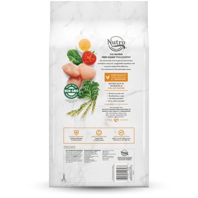Choose to give your paw-tner a natural, nutrient-packed meal with Nutro Natural Choice Adult Dry Dog Food, Chicken & Brown Rice Recipe Dog Kibble. This dry food for adult dogs is specially formulated to provide both nutrition and flavor. Real chicken is at the very top of the ingredient list for a high-quality protein source. Omega-3 and omega-6 fatty acids support healthy skin and a gorgeous, shiny coat, while essential antioxidants support immunity and natural fiber supports good digestion. Plus, this food is made with non-GMO ingredients and you won’t find any chicken by-product meal, corn, wheat or soy here!