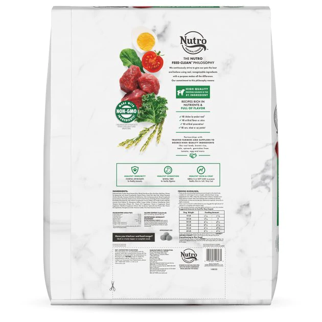 Choose to give your paw-tner a natural, nutrient-packed meal with Nutro Natural Choice Adult Dry Dog Food, Lamb & Brown Rice Recipe Dog Kibble. This dry food for adult dogs is specially formulated to provide both nutrition and flavor. Real lamb is at the very top of the ingredient list for a high-quality protein source. Omega-3 and omega-6 fatty acids support healthy skin and a gorgeous, shiny coat, while essential antioxidants support immunity and natural fiber supports good digestion. Plus, this food is made with non-GMO ingredients and you won’t find any chicken by-product meal, corn, wheat or soy here!