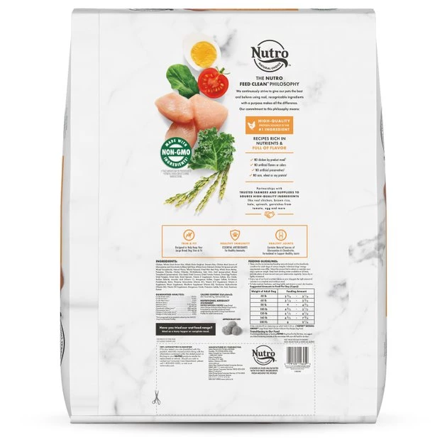 Choose to give your paw-tner a natural, nutrient-packed meal with Nutro Natural Choice Large Breed Adult Dry Dog Food, Chicken & Brown Rice Recipe Dog Kibble. This dry food for large breed adult dogs is specially formulated to provide both nutrition and flavor. Real chicken is at the very top of the ingredient list for a high-quality protein source. Natural sources of glucosamine and chondroitin support healthy joints, while essential antioxidants support immunity and natural fiber supports good digestion. Plus, this food is made with non-GMO ingredients and you won’t find any chicken by-product meal, corn, wheat or soy here!