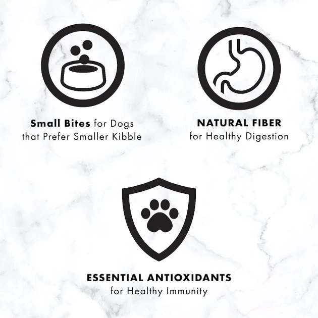 - Small-sized kibble is great for dogs who prefer petite bites.