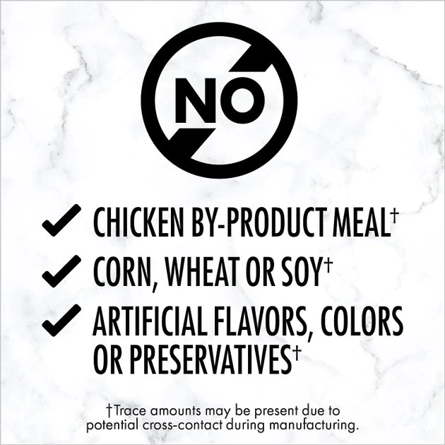- Premium grain-free wet food contains no chicken by-product meal, corn, soy, wheat, artificial colors, flavors or preservatives.