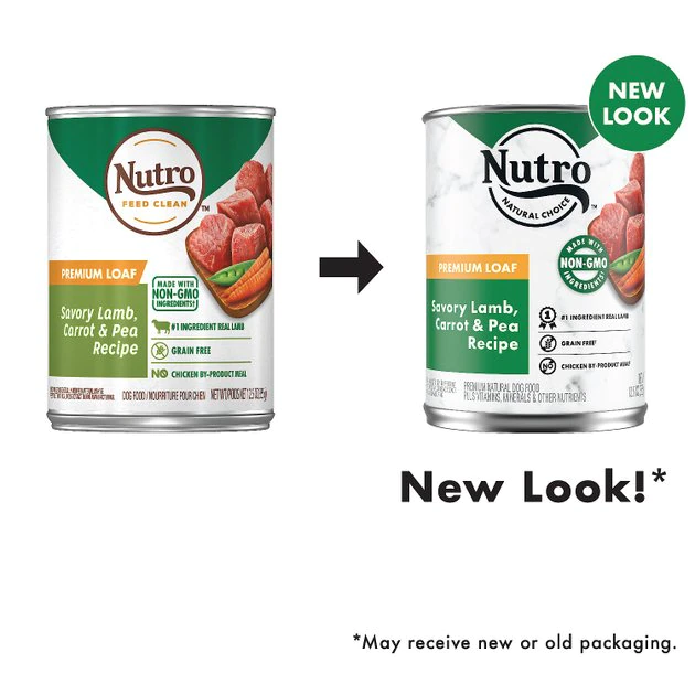 Watch your dog drool with delight over these Nutro Premium Loaf Savory Lamb, Carrot & Pea Recipe Grain-Free Canned Dog Food. This premium, grain free wet dog food is full of nutrients and flavor that dogs—big and small—go crazy over. Each high-protein meal is balanced with vitamins and minerals and crafted with real lamb as the very first ingredient. Plus, with Nutro, you can feed your pal with confidence knowing that every ingredient is carefully sourced from a trusted network of farmers and suppliers and is 100% free of chicken by-product meal, corn, soy, wheat, artificial colors, flavors or preservatives. Give your pal the nutrition he deserves and the taste he loves with Nutro.