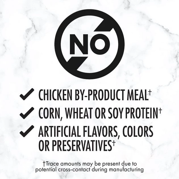 - Made with non-GMO ingredients and no chicken by-product meal, corn, wheat or soy protein.