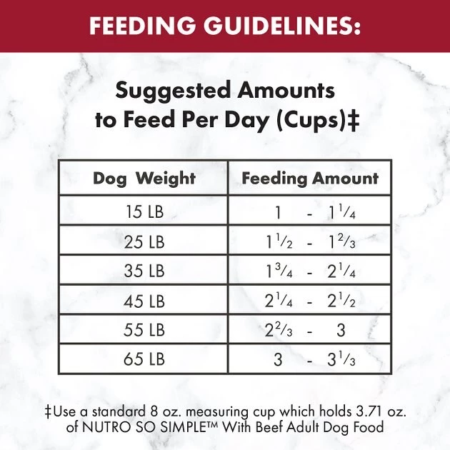 ‡Use a standard 8 oz. measuring cup which holds 3.63 oz. of NUTRO SO SIMPLETM With Chicken Adult Dog Food.