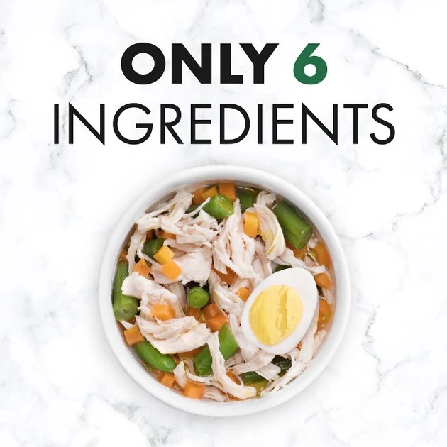 Chicken, Chicken Bone Broth, Carrots, Green Beans, Quail Egg, Flaxseed Oil.