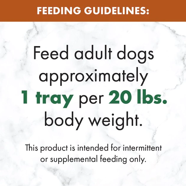 Feed adult dogs approximately 1 tray per 20 lbs. body weight.