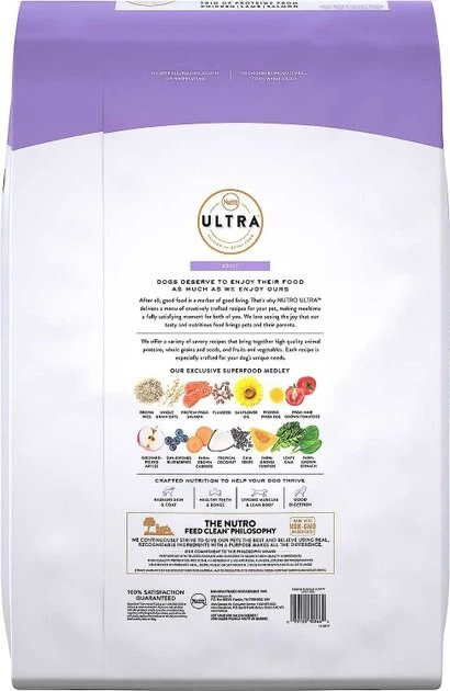 Treat your pooch to some good, clean snacking with Nutro Ultra Adult Dry Food + Crunchy with Real Mixed Berries Dog Treats. The dry food contains the perfect mix of premium lean proteins, antioxidant-rich fruits and vegetables, whole grains and healthy oils to help your dog be at his best. Combined protein sources from high-quality natural and holistic ingredients ensure optimal Amino Acid levels and great taste for your dog. Additionally, the crunchy dog treats are made with high-quality protein from chicken as the foundation of the recipe. Each resealable bag is packed with crunchy bites perfect for when your pal has the munchies, or for training, too.