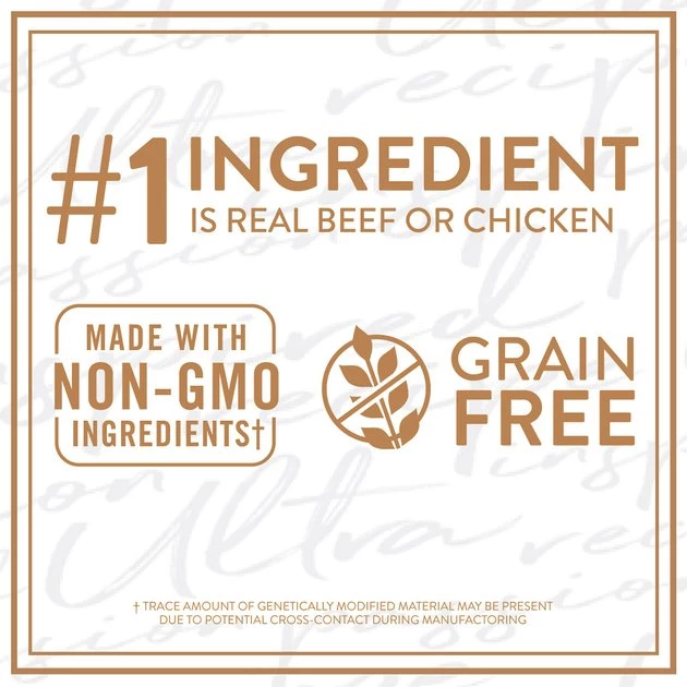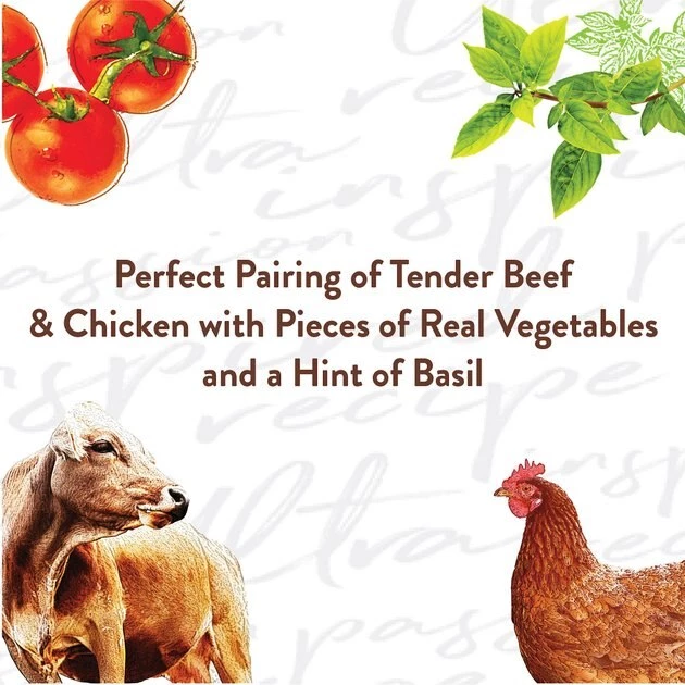 - Real beef or chicken is the first ingredient with real vegetables and herbs in a tasty gravy!