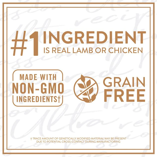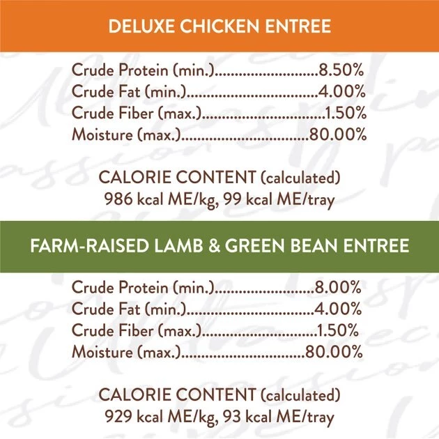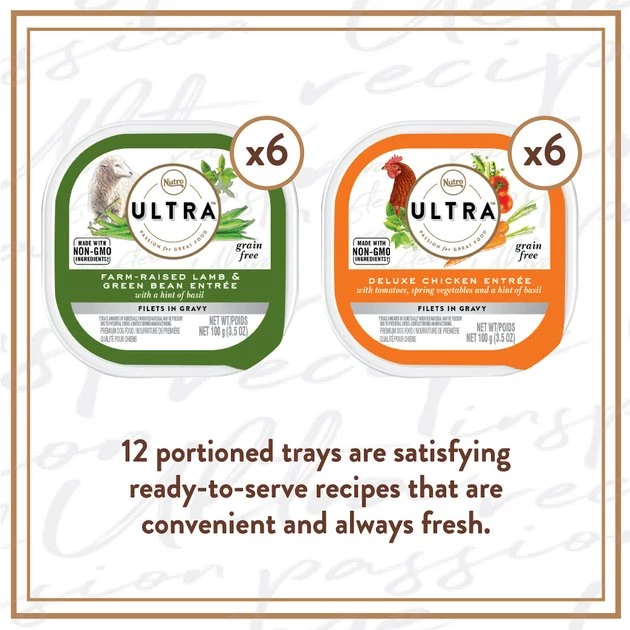 - Contains 2 flavors of Grain-Free Filets in Gravy including Farm-Raised Lamb & Green Bean Entrée with a hint of basil and Deluxe Chicken Entrée with tomatoes, spring vegetables, and a hint of basil.