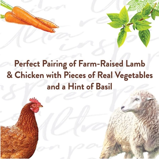 - Real lamb or chicken is the first ingredient with real vegetables and herbs in a tasty gravy!