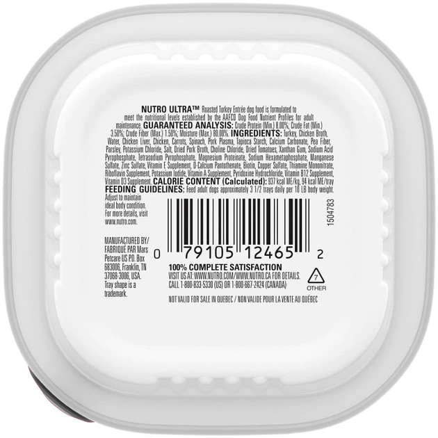 Your dog deserves to enjoy their food as much as you do, so feed him Nutro Ultra Roasted Turkey Entree Grain-Free Adult Filets Gravy Dog Food Trays and make your dog’s mealtime a moment worth celebrating. With recipes inspired by the best ingredients, this grain-free meal serves up an elevated recipe made for your pup’s refined taste. Features a perfect pairing of high-quality protein and pieces of real vegetables, plus a hint of herb, the appetizing entrée gives your dog the ultimate flavor experience. An adult wet dog food, it’s made with quality ingredients, carefully sourced from a trusted network of farmers and suppliers and have no chicken by-product meal, corn, wheat, soy, artificial flavors or preservatives.