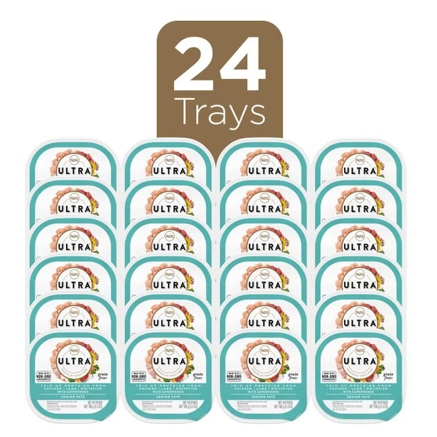 Get those tails wagging for mealtime with Nutro Ultra Grain-Free Trio Protein Chicken, Lamb & Whitefish Pate with Superfoods Senior Wet Dog Food Trays. Thoughtfully crafted with real, irresistible ingredients, this pate features chicken alongside lamb, whitefish, and superfoods for a holistic approach to your senior pup’s food. Plus, you don’t have to worry about GMOs, chicken by-product meal, corn, wheat, soy, grain, or artificial additives detracting from your furry friend’s nutrition. Use it alone as a total meal, or top off dry food to add a fun creamy treat!