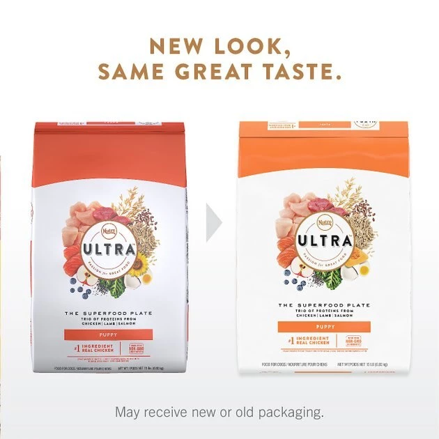 Make your puppy’s mealtime nutritious and delicious with Nutro Ultra Puppy Dry Dog Food. Specially formulated for puppies, these tasty, dry recipes start with real chicken as the main ingredient—no chicken by-product meal here. Add lamb, salmon, and a blend of 15 superfoods and you have a mouthwatering, healthy meal. Sourced from trusted farmers, the high quality, non-GMO ingredients provide a balanced, nutrient rich puppy diet and help keep your furbaby’s coat and skin healthy. Plus there are no artificial flavors, colors, or preservatives and it is free of corn, wheat, and soy protein. Your growing pup will love to eat this flavorful, nourishing kibble!