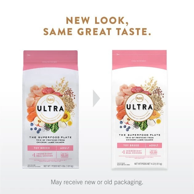 Make your petite pal’s mealtime nutritious and delicious with Nutro Ultra Toy Breed Adult Dry Dog Food. Specially formulated for toy breed adult dogs, these tasty, dry recipes start with real chicken as the main ingredient—no chicken by-product meal here. Add lamb, salmon, and a blend of 15 superfoods and you have a mouthwatering, healthy meal. Sourced from trusted farmers, the high quality, non-GMO ingredients provide a balanced, nutrient rich diet that will help your tiny dog thrive. Plus there are no artificial flavors, colors, or preservatives and it is free of corn, wheat, and soy protein. Your favorite pint-sized furball will love to eat this flavorful, nourishing kibble!