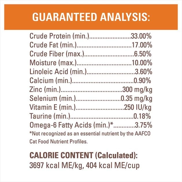 3697 kcal/kg, 404 kcal/cup